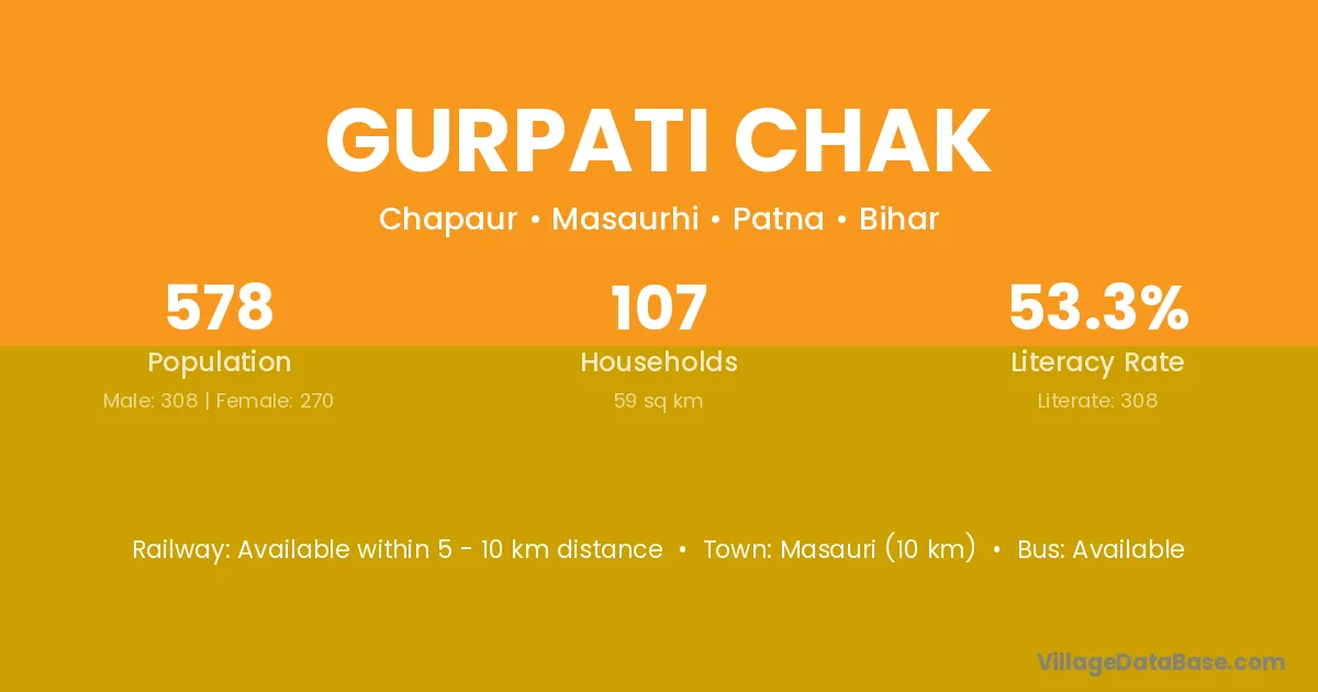 Gurpati Chak village has a total population of 578 people, of which 308 are males and 270 are females.