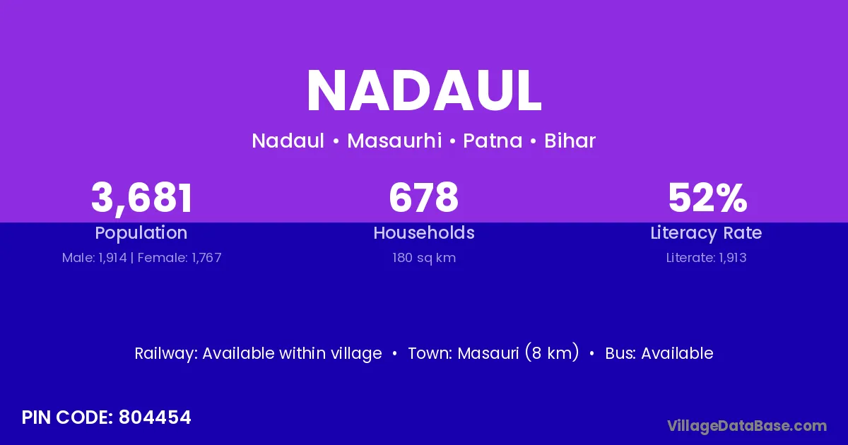 Nadaul village has a total population of 3,681 people, of which 1,914 are males and 1,767 are females.