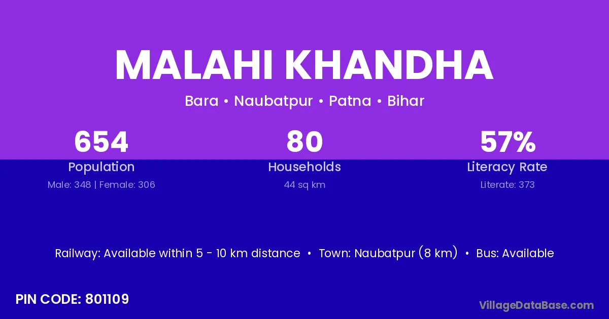 Naubatpur (8 km) is the nearest town to Malahi Khandha village for major economic activities and is located approximately 8 km away.