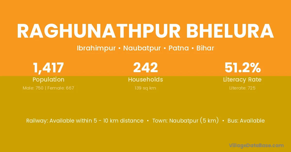 Naubatpur (5 km) is the nearest town to Raghunathpur Bhelura village for major economic activities and is located approximately 5 km away.