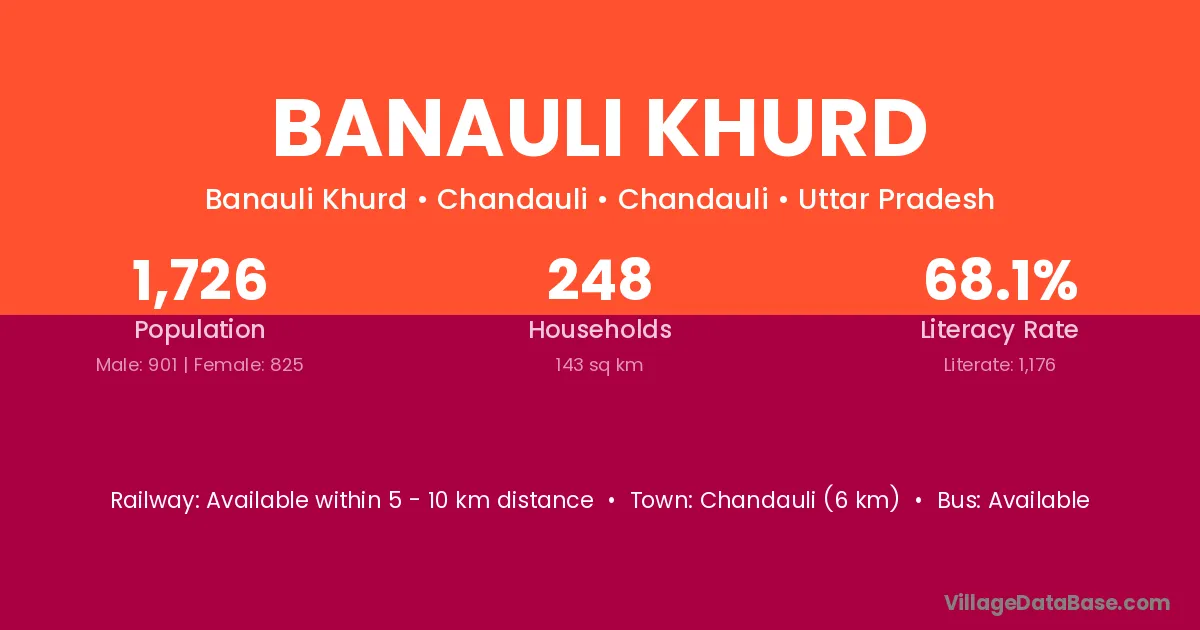 The literacy rate of Banauli Khurd village is 50.31%. Male literacy stands at 55.82% and female literacy at 44.80%.
