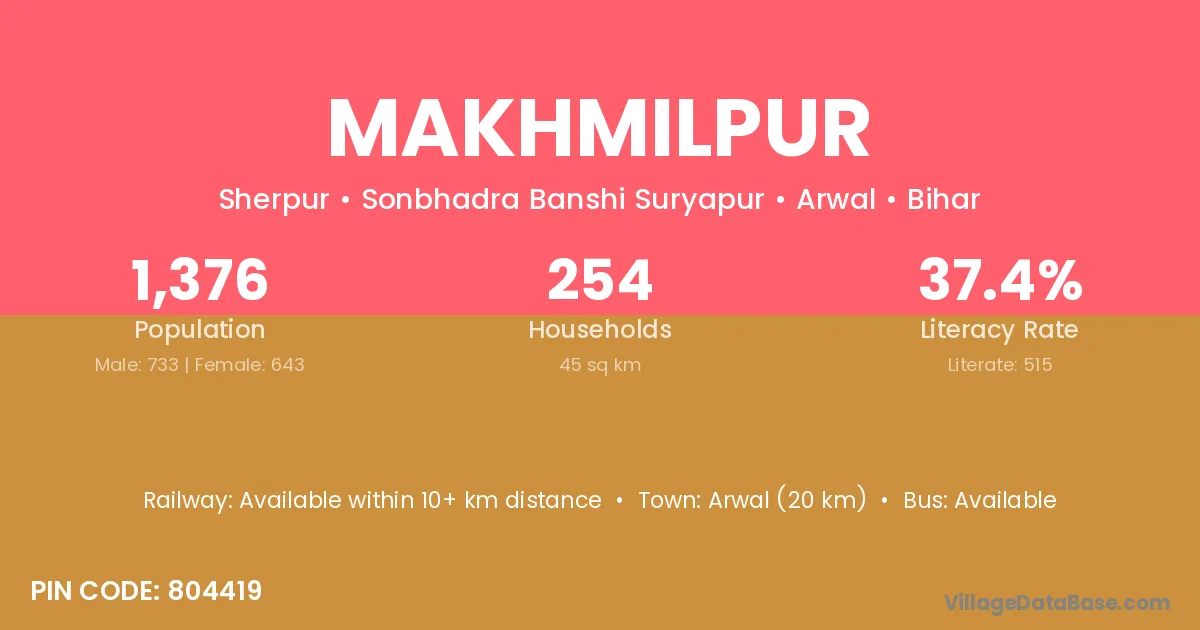 Jehanabad (19 km) is the nearest town to Makhmilpur village for major economic activities and is located approximately 19 km away.