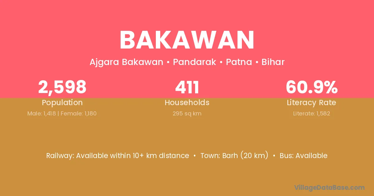 Barh (20 km) is the nearest town to Bakawan village for major economic activities and is located approximately 20 km away.
