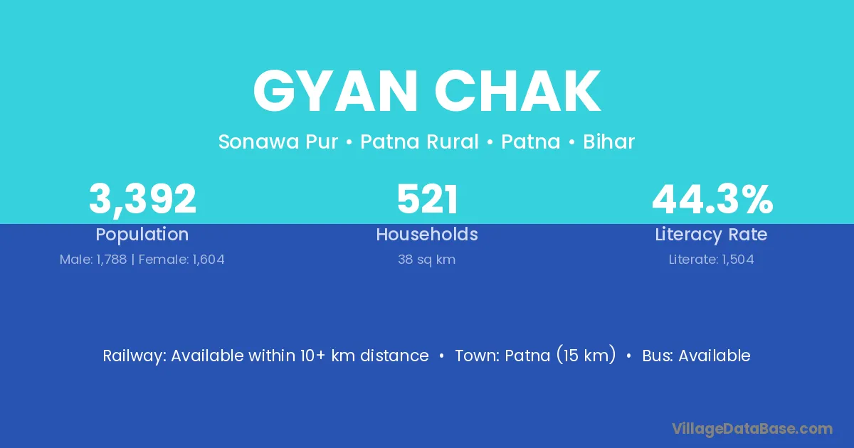 Patna (15 km) is the nearest town to Gyan Chak village for major economic activities and is located approximately 15 km away.