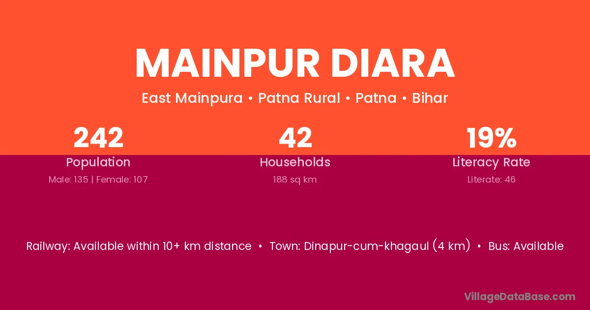 Dinapur-cum-khagaul (4 km) is the nearest town to Mainpur Diara village for major economic activities and is located approximately 4 km away.