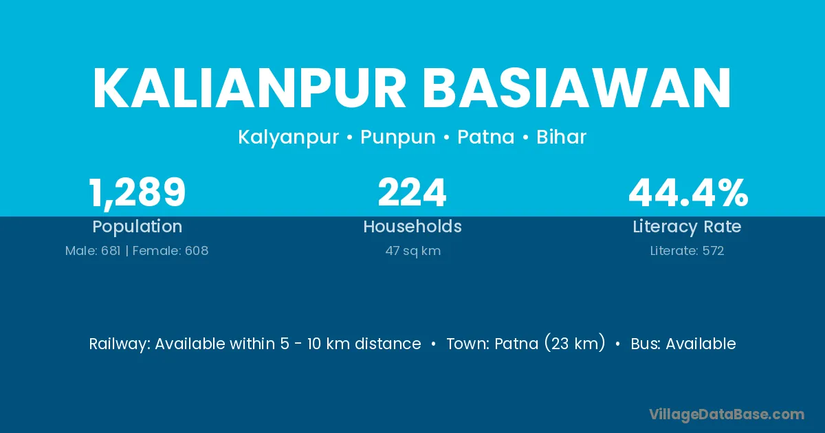 Patna (23 km) is the nearest town to Kalianpur Basiawan village for major economic activities and is located approximately 23 km away.