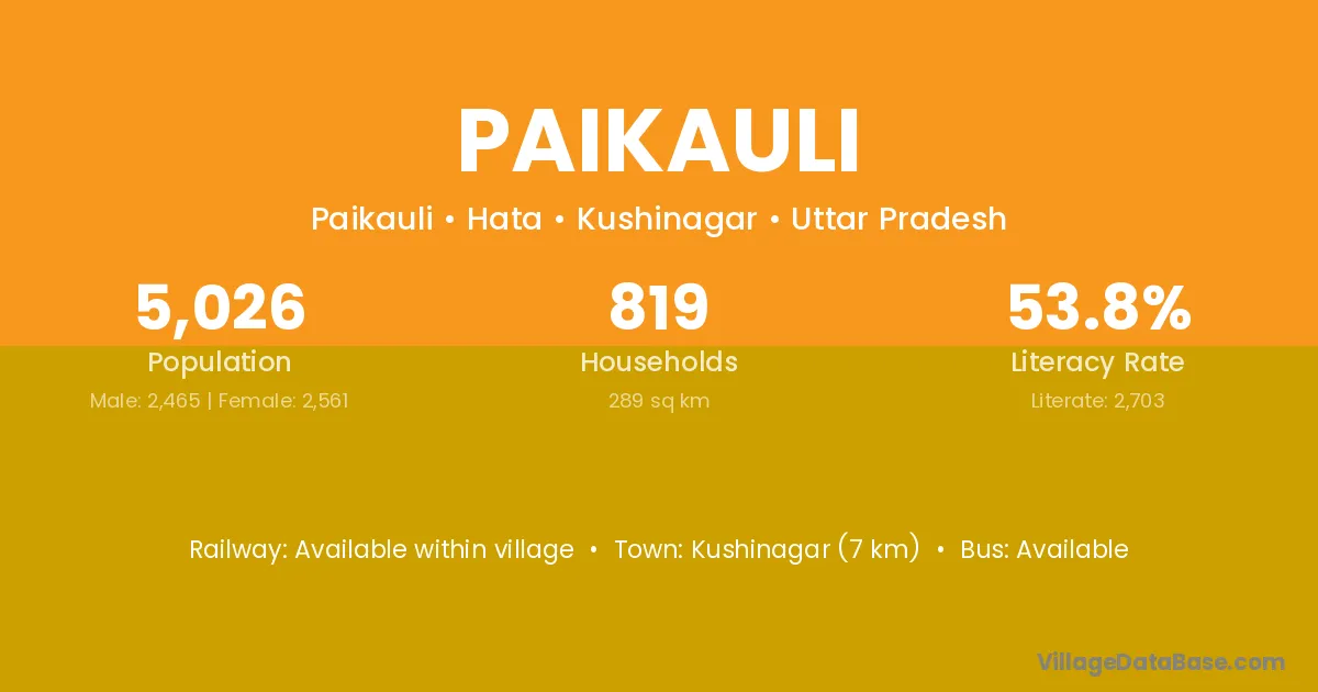 Paikauli village has a total population of 504 people, of which 265 are males and 239 are females.