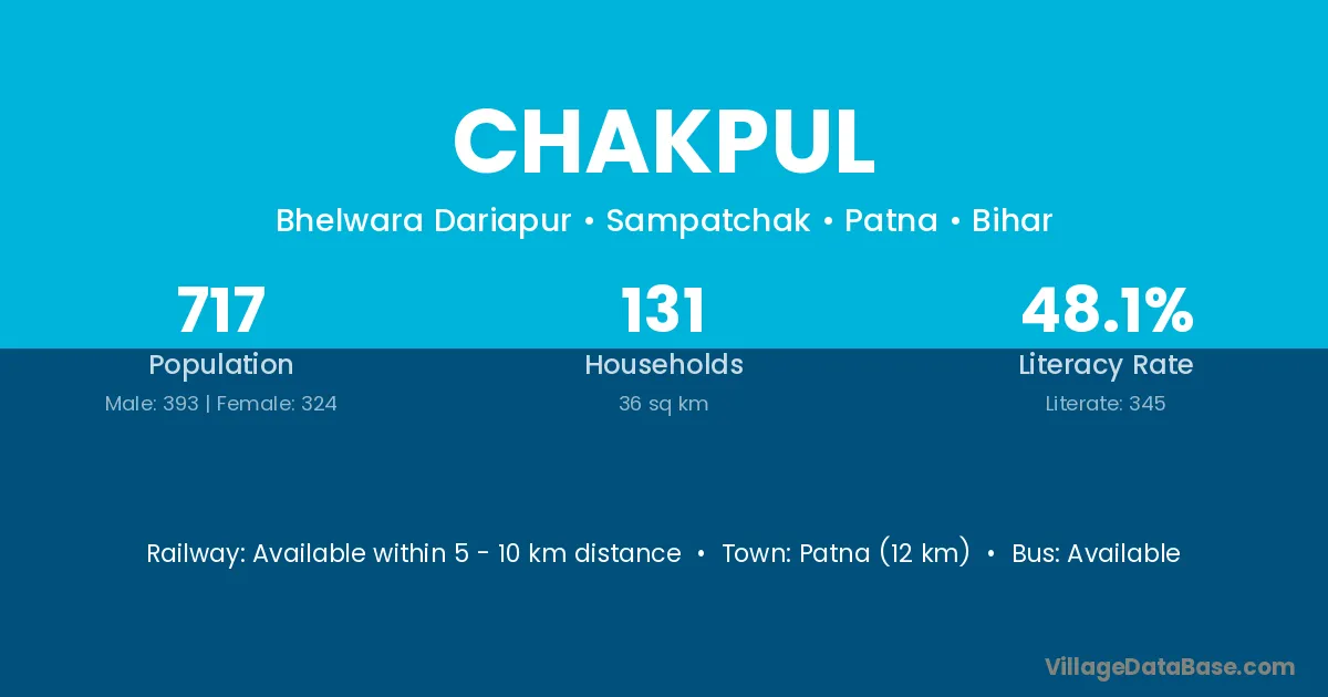Patna (12 km) is the nearest town to Chakpul village for major economic activities and is located approximately 12 km away.
