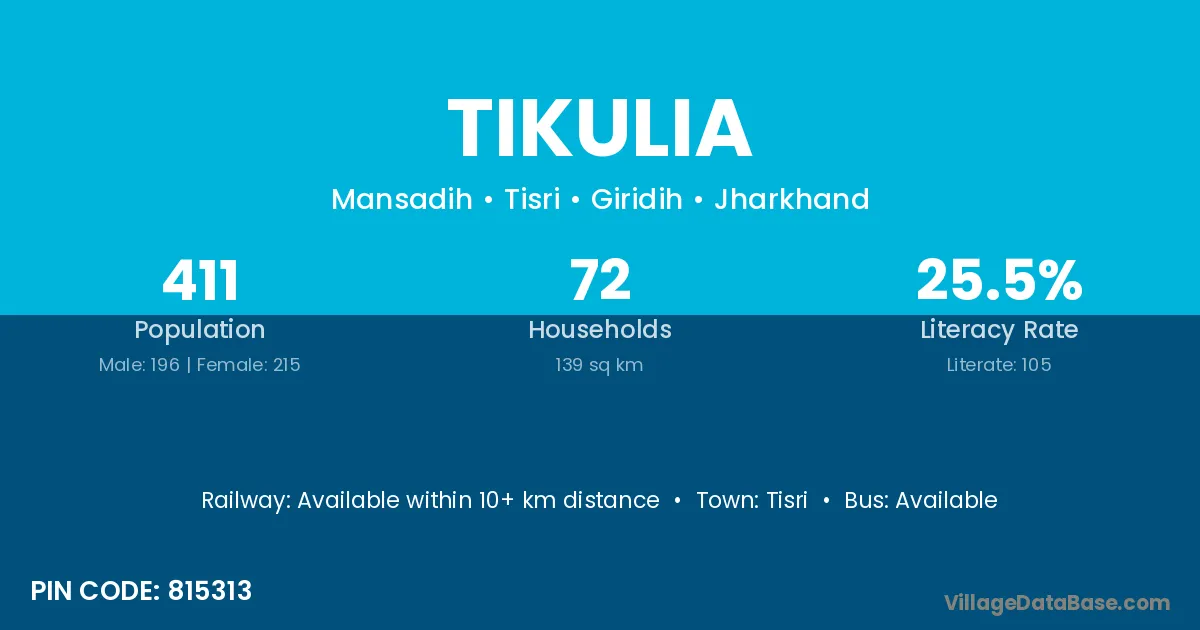 According to Census 2011 information, the village code of Tikulia village is 845302.