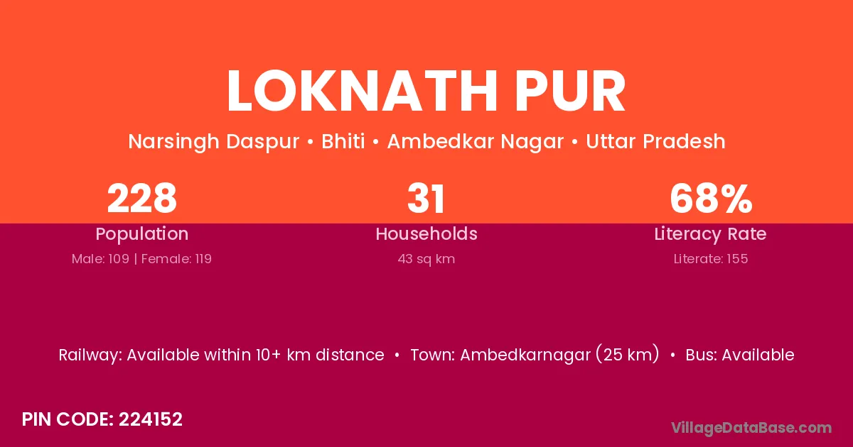 Loknath Pur village has a total population of 1,476 people, of which 808 are males and 668 are females.