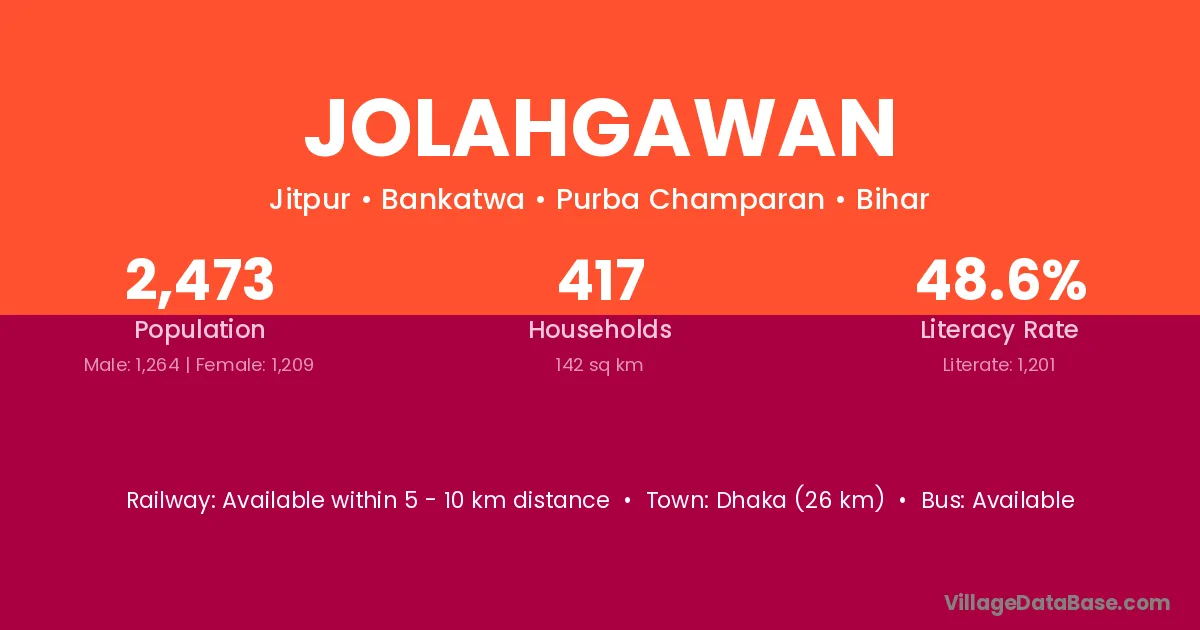 Jolahgawan village has a total population of 2,473 people, of which 1,264 are males and 1,209 are females.