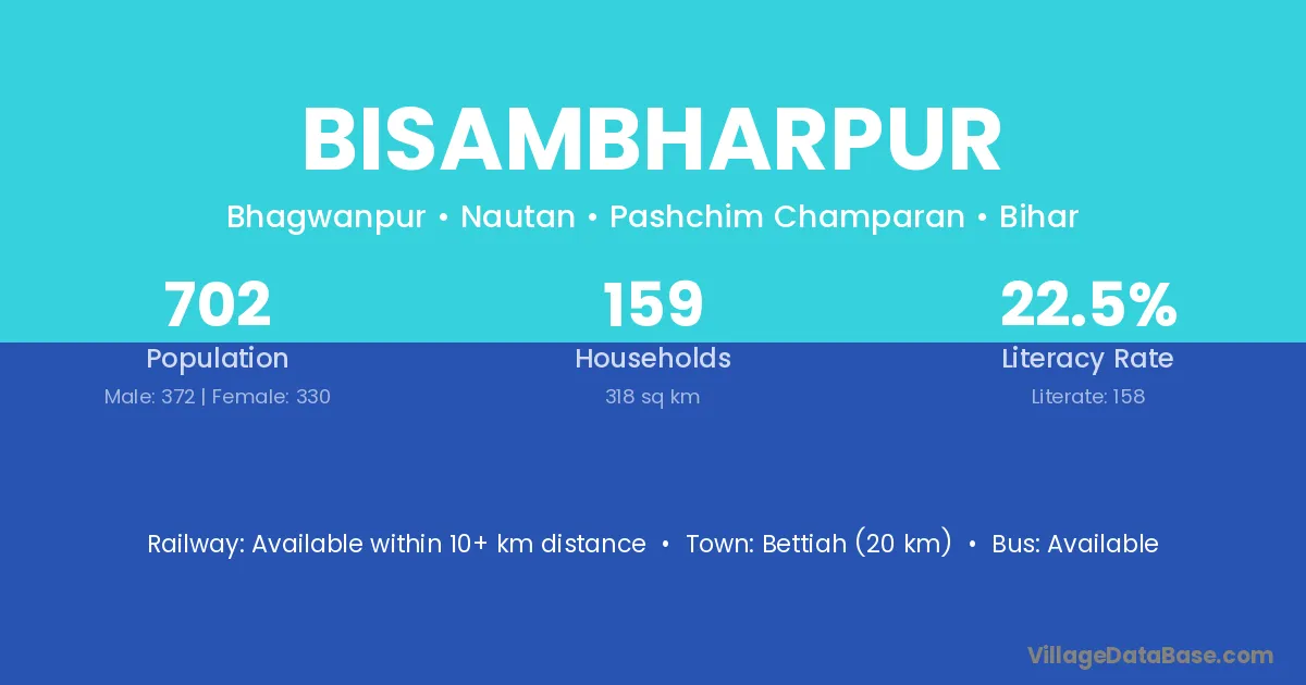 Dhaka (9 km) is the nearest town to Bisambharpur village for major economic activities and is located approximately 9 km away.