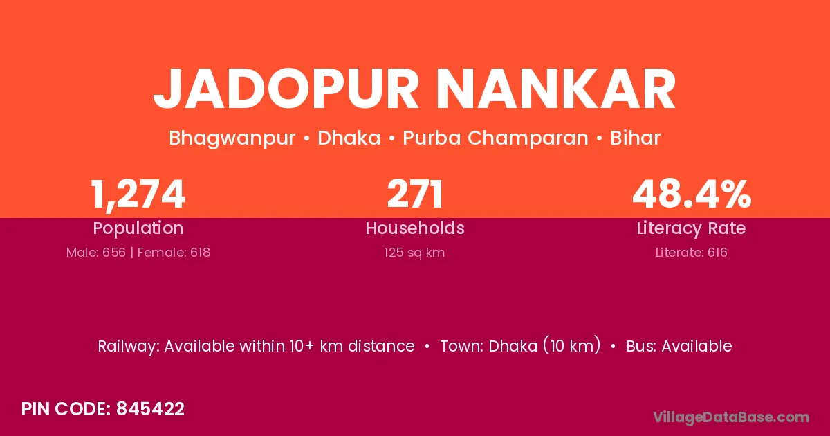 Jadopur Nankar village has a total population of 1,274 people, of which 656 are males and 618 are females.