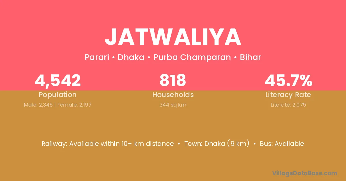 Jatwaliya village has a total population of 4,542 people, of which 2,345 are males and 2,197 are females.