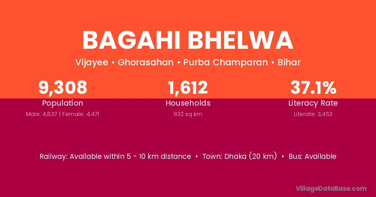 Bagahi Bhelwa village has a total population of 9,308 people, of which 4,837 are males and 4,471 are females.