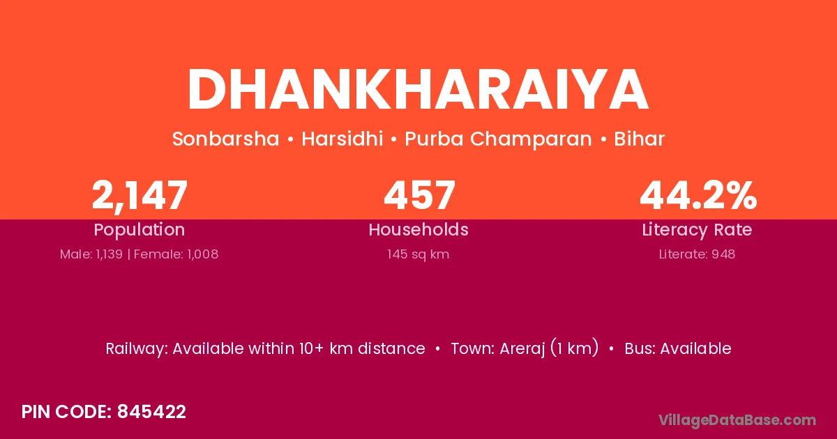 According to Census 2011 information, the village code of Dhankharaiya village is 845422.