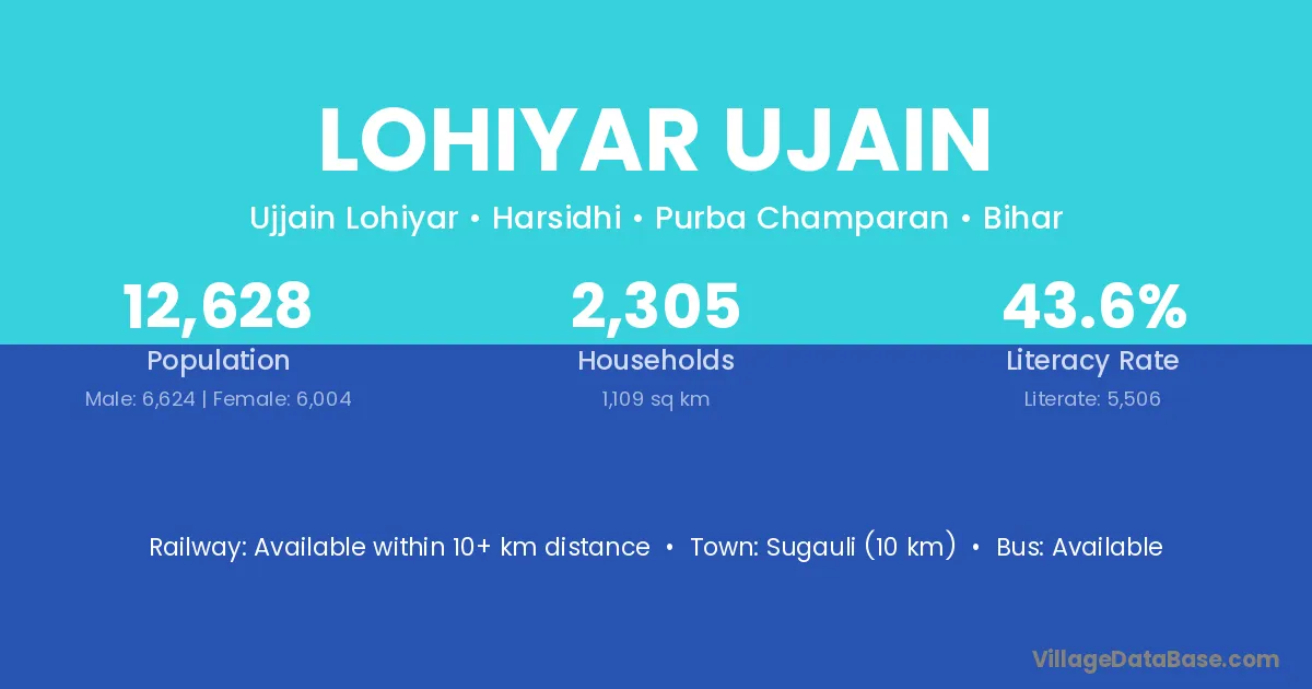 Sugauli (10 km) is the nearest town to Lohiyar Ujain village for major economic activities and is located approximately 10 km away.