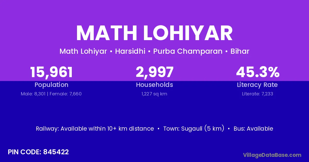 Sugauli (5 km) is the nearest town to Math Lohiyar village for major economic activities and is located approximately 5 km away.