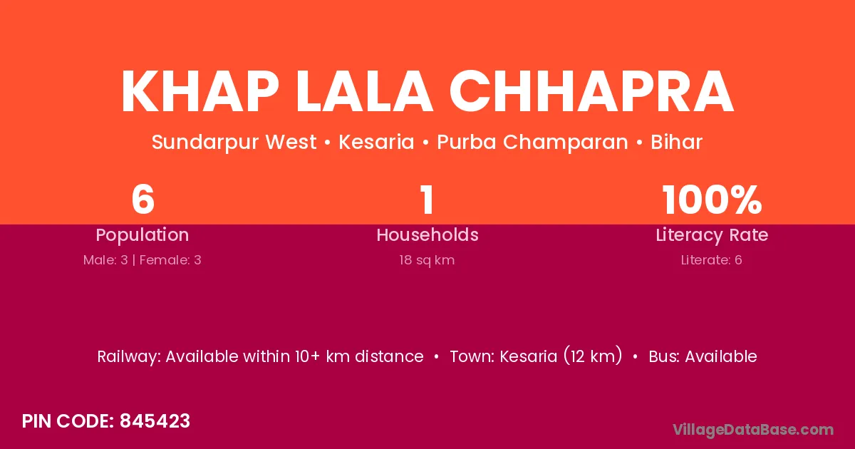 Khap Lala Chhapra village has a total population of 6 people, of which 3 are males and 3 are females.