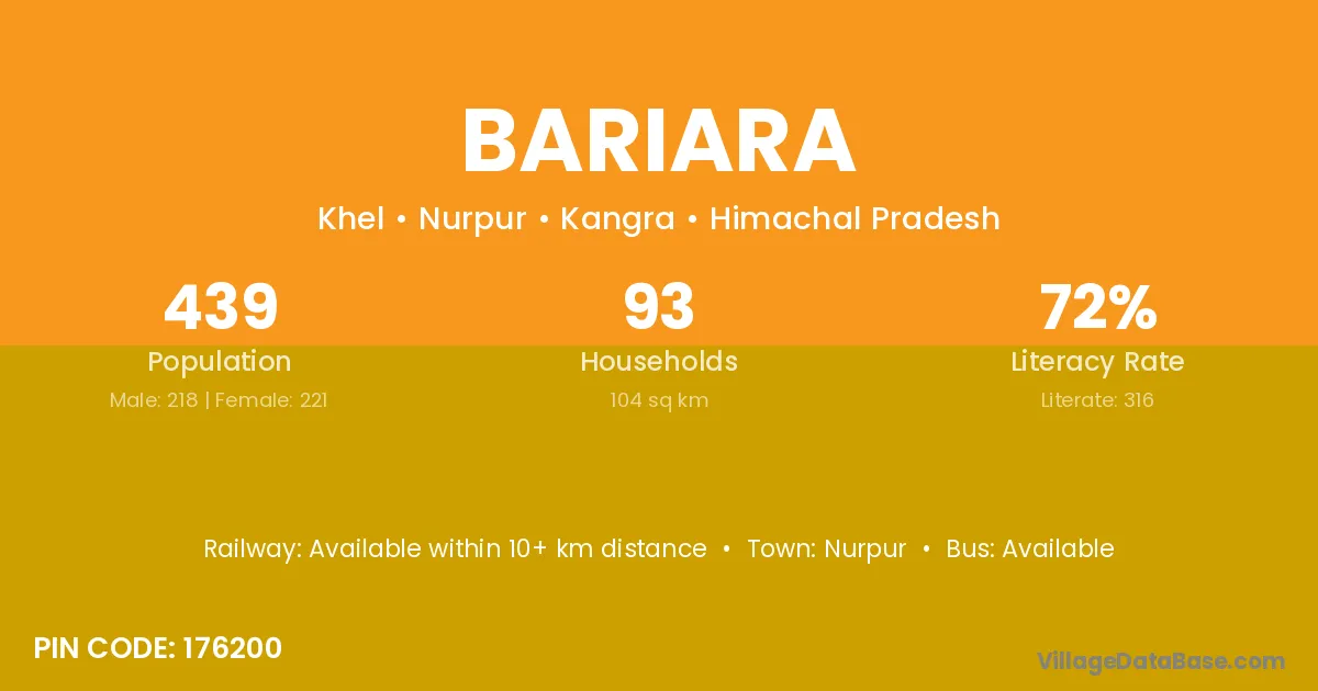 Bariara village has a total population of 481 people, of which 264 are males and 217 are females.