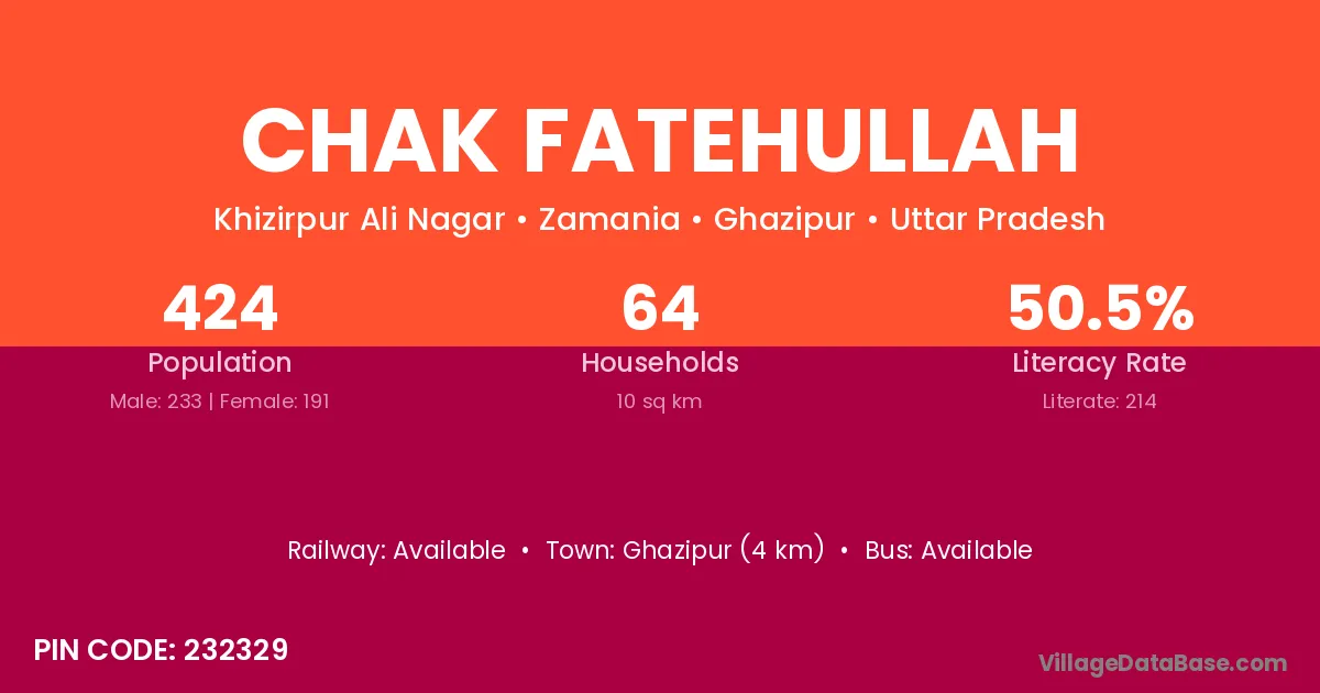 The literacy rate of Chak Fatehullah village is 39.25%. Male literacy stands at 47.18% and female literacy at 30.48%.