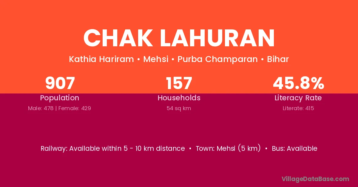 Mehsi (5 km) is the nearest town to Chak Lahuran village for major economic activities and is located approximately 5 km away.