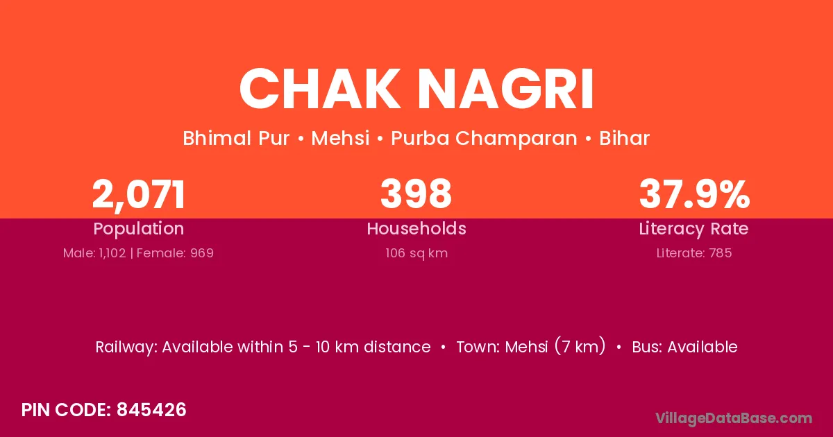 Mehsi (7 km) is the nearest town to Chak Nagri village for major economic activities and is located approximately 7 km away.