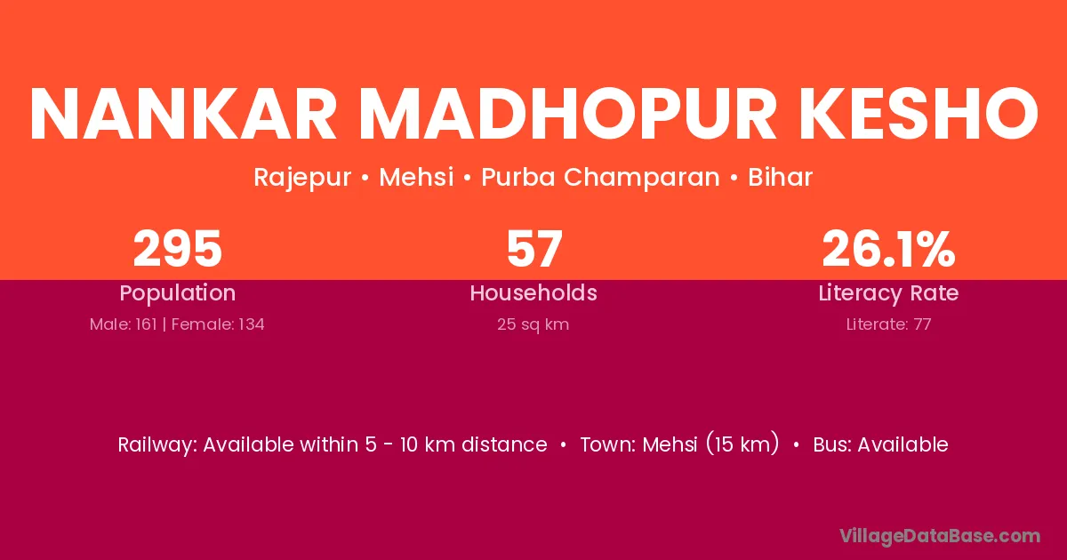 Nankar Madhopur Kesho village has a total population of 295 people, of which 161 are males and 134 are females.