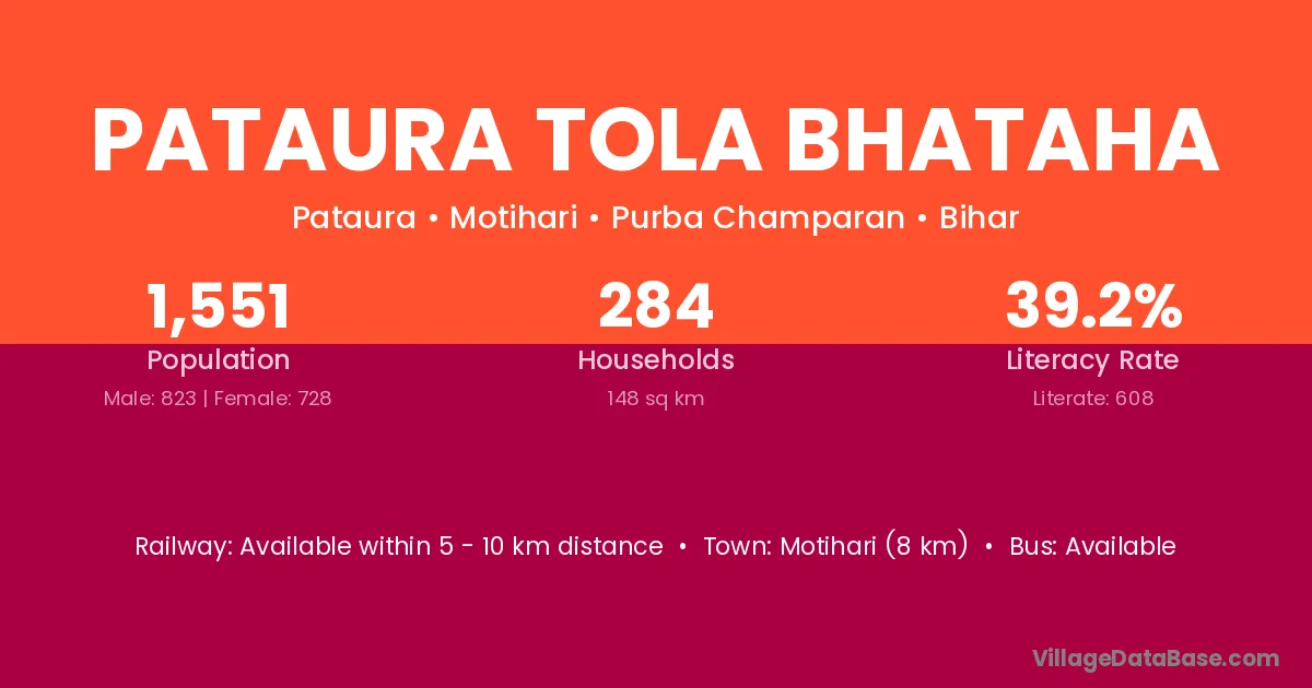 Motihari (8 km) is the nearest town to Pataura Tola Bhataha village for major economic activities and is located approximately 8 km away.