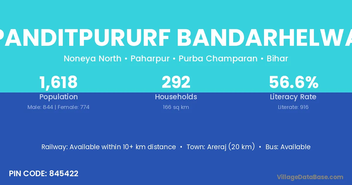 Areraj (20 km) is the nearest town to Panditpururf Bandarhelwa village for major economic activities and is located approximately 20 km away.
