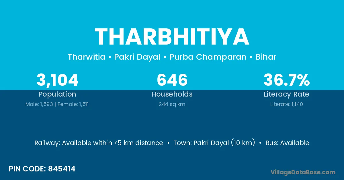 Pakri Dayal (10 km) is the nearest town to Tharbhitiya village for major economic activities and is located approximately 10 km away.