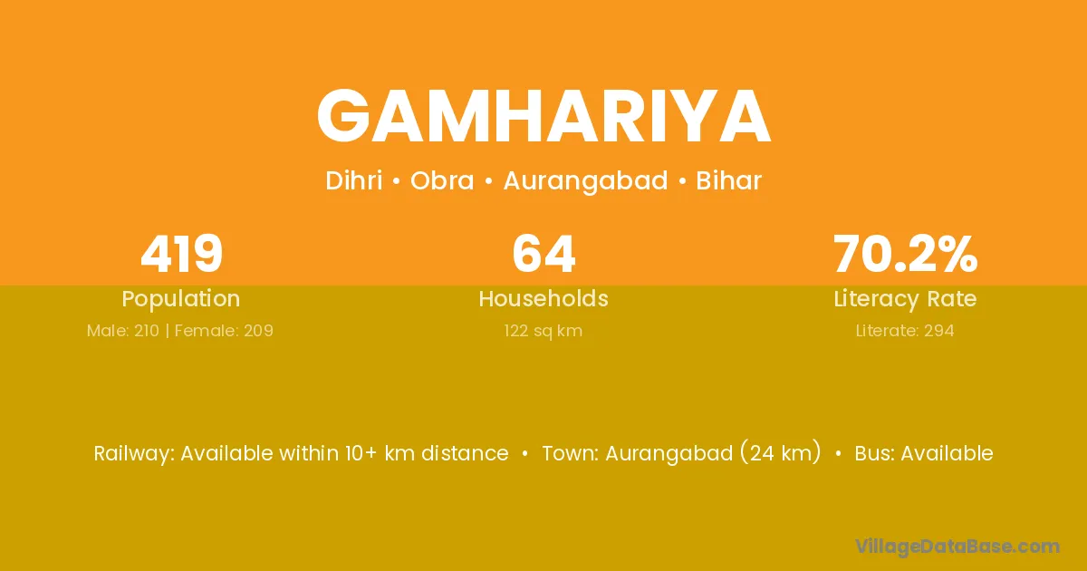 There are approximately 608 households in Gamhariya village.