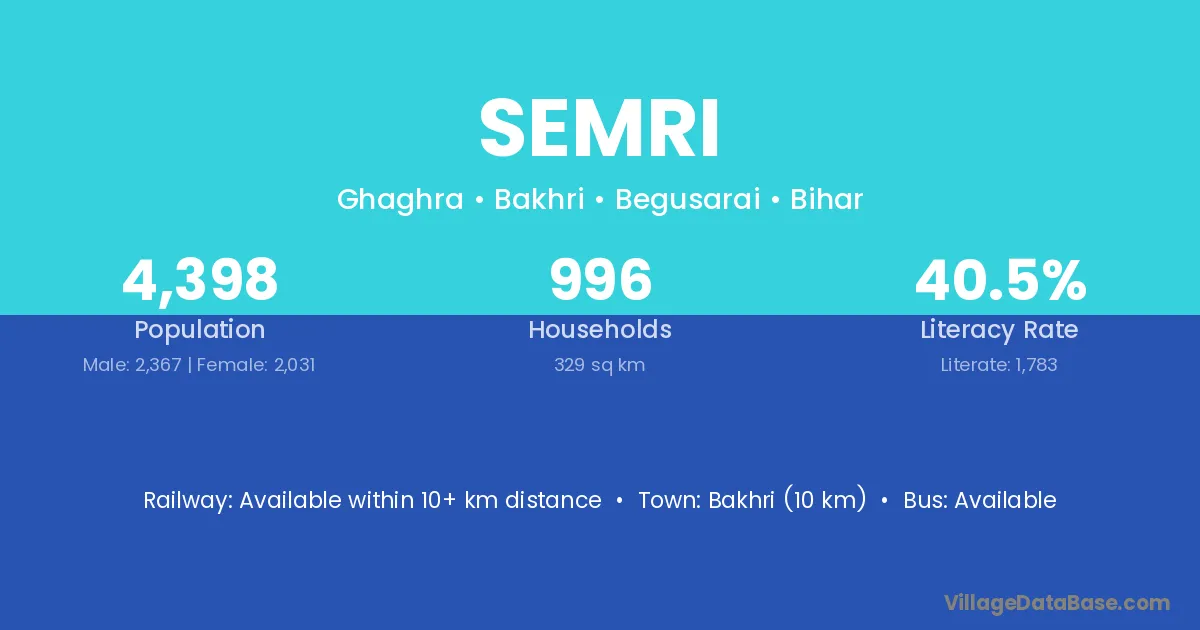 Raxaul (10 km) is the nearest town to Semri village for major economic activities and is located approximately 10 km away.