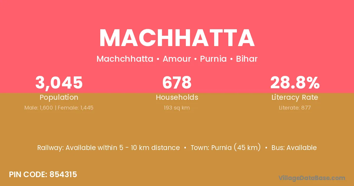 Purnia (45 km) is the nearest town to Machhatta village for major economic activities and is located approximately 45 km away.