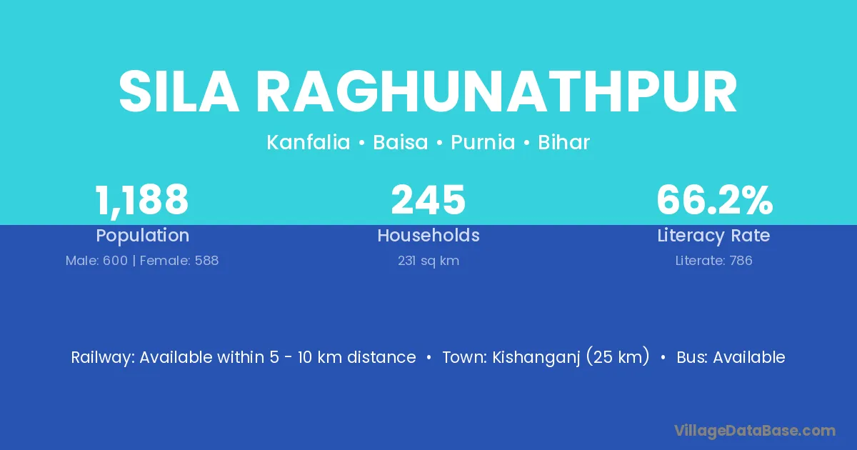 Kishanganj (25 km) is the nearest town to Sila Raghunathpur village for major economic activities and is located approximately 25 km away.
