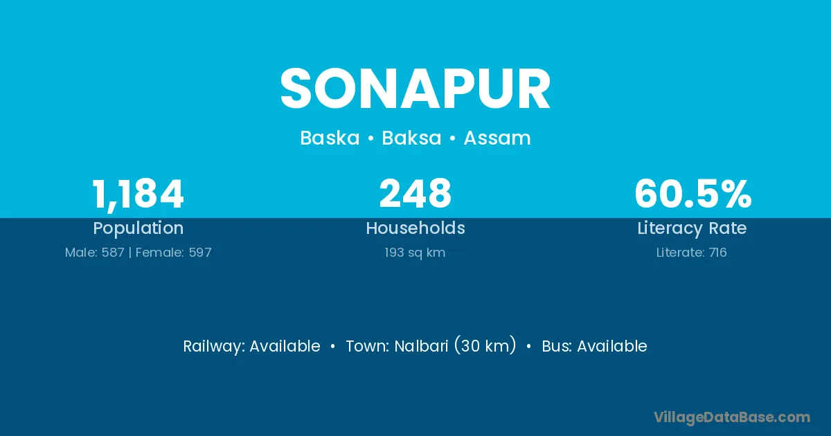 Kishanganj (25 km) is the nearest town to Sonapur village for major economic activities and is located approximately 25 km away.