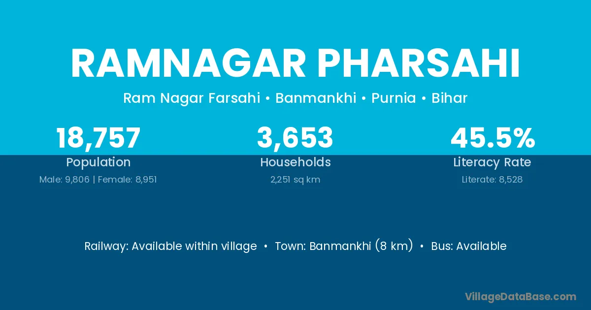 Banmankhi (8 km) is the nearest town to Ramnagar Pharsahi village for major economic activities and is located approximately 8 km away.