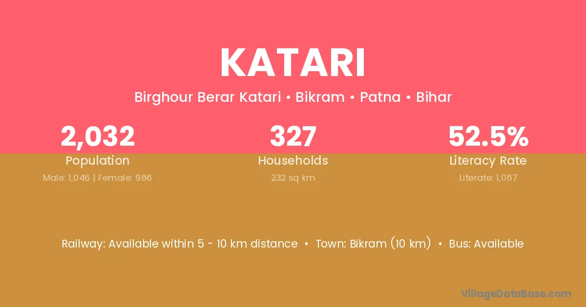 Purnia (30 km) is the nearest town to Katari village for major economic activities and is located approximately 30 km away.