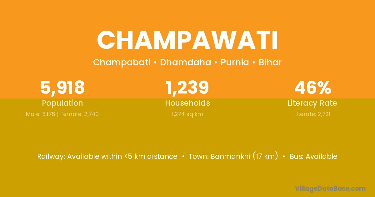 Banmankhi (17 km) is the nearest town to Champawati village for major economic activities and is located approximately 17 km away.