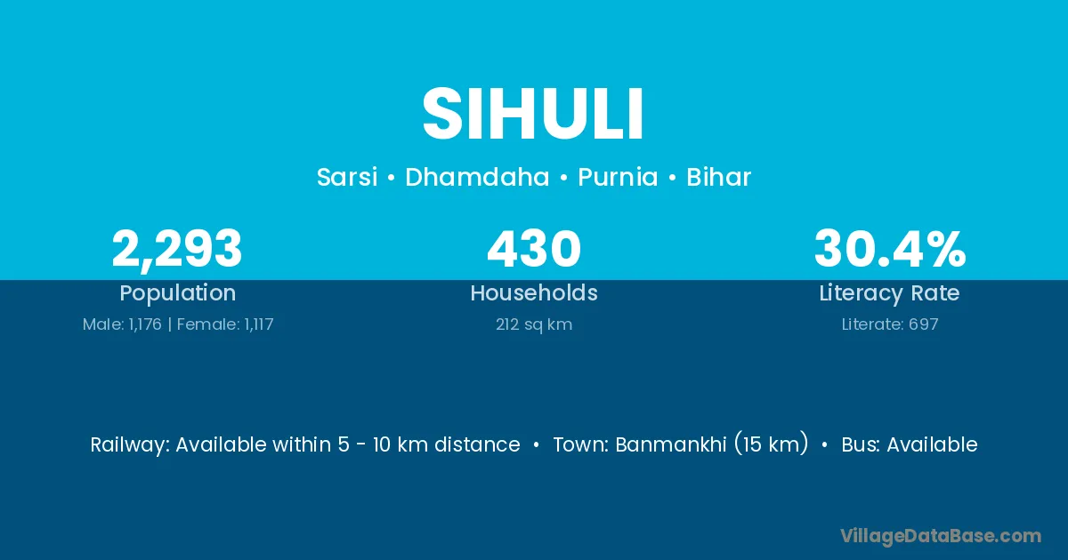 Banmankhi (15 km) is the nearest town to Sihuli village for major economic activities and is located approximately 15 km away.