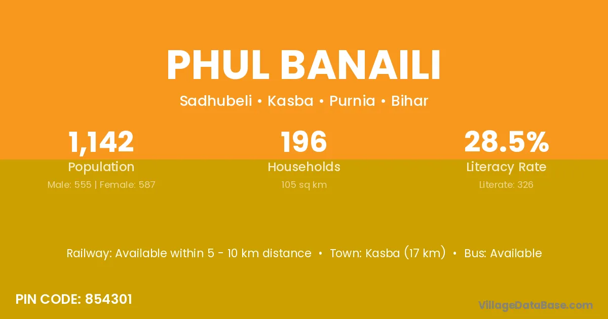 Kasba (17 km) is the nearest town to Phul Banaili village for major economic activities and is located approximately 17 km away.