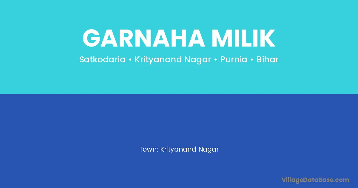 Garnaha Milik village is located in the Krityanand Nagar Subdivision of the Purnia district in Bihar .