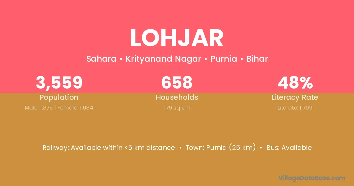 Purnia (25 km) is the nearest town to Lohjar village for major economic activities and is located approximately 25 km away.