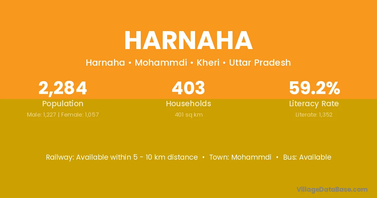 Harnaha village has a total population of 2,369 people, of which 1,193 are males and 1,176 are females.