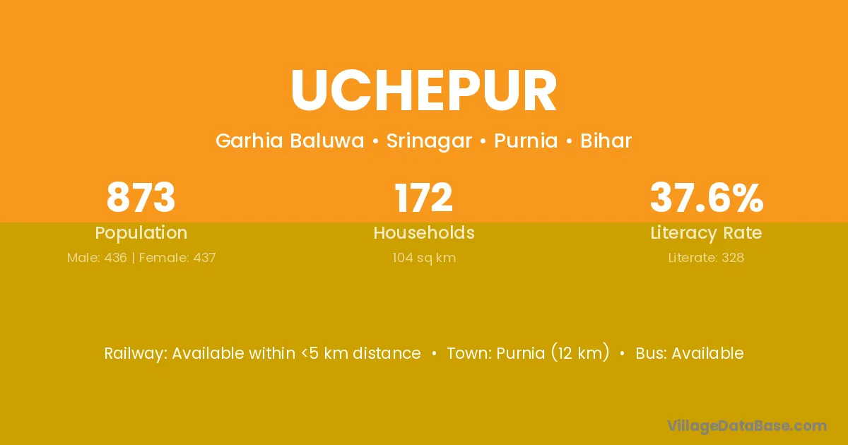 Purnia (12 km) is the nearest town to Uchepur village for major economic activities and is located approximately 12 km away.