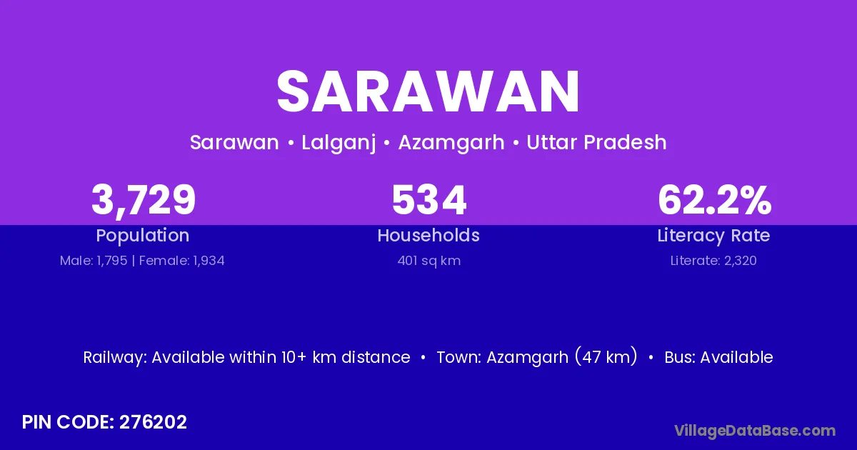 The literacy rate of Sarawan village is 62.69%. Male literacy stands at 73.71% and female literacy at 51.02%.