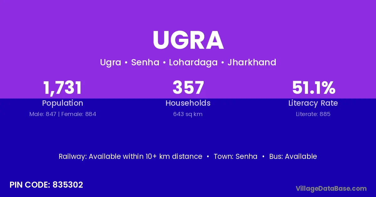 Ugra village has a total population of 945 people, of which 482 are males and 463 are females.