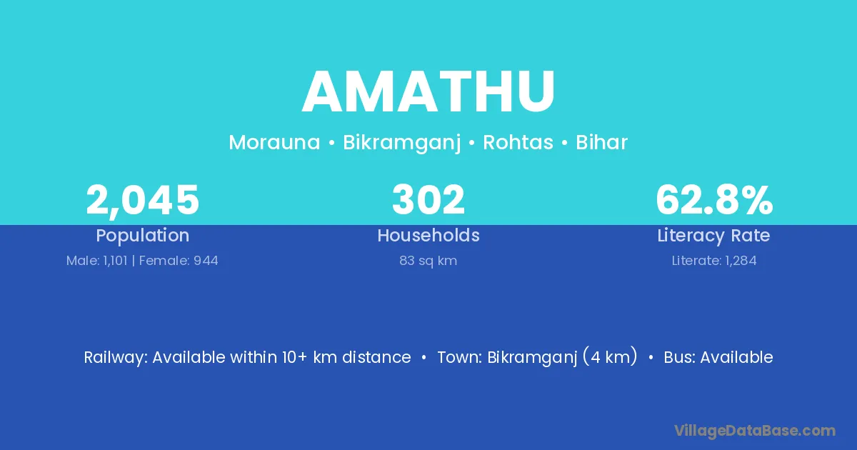 Bikramganj (4 km) is the nearest town to Amathu village for major economic activities and is located approximately 4 km away.