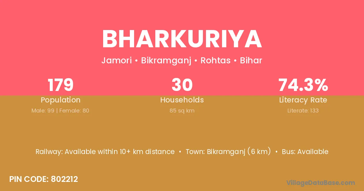 Bikramganj (6 km) is the nearest town to Bharkuriya village for major economic activities and is located approximately 6 km away.