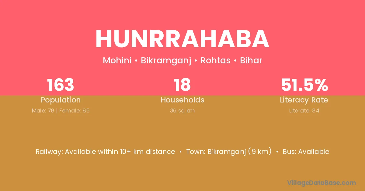 Bikramganj (9 km) is the nearest town to Hunrrahaba village for major economic activities and is located approximately 9 km away.